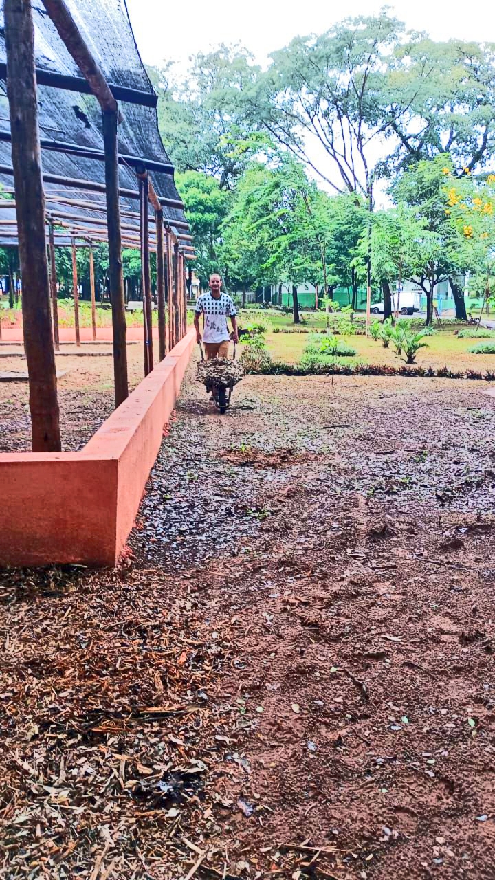 Com apoio de equipes da Prefeitura, da Frente de Trabalho e do Projeto de Educação Ambiental, o Departamento de Meio Ambiente segue avançando na implantação do novo paisagismo do Bosque Municipal.