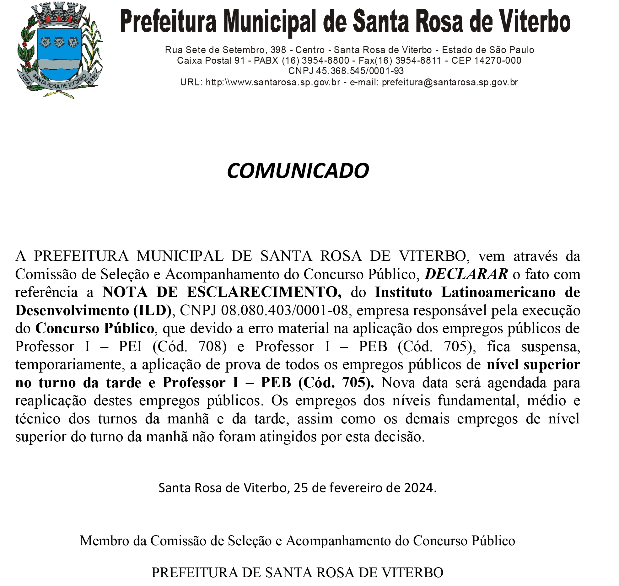 COMUNICADO SOBRE O CONCURSO PÚBLICO