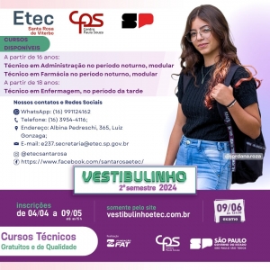 Para mais informações, chame no Whatsapp da ETEC Santa Rosa: (16) 99112-4162.