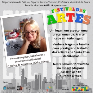 Compareça e curta esta apresentação que contará com música, dança, teatro e artesanato durante a Feira Livre da Mogiana, a partir das 09h00 deste sábado, dia 11 de maio.