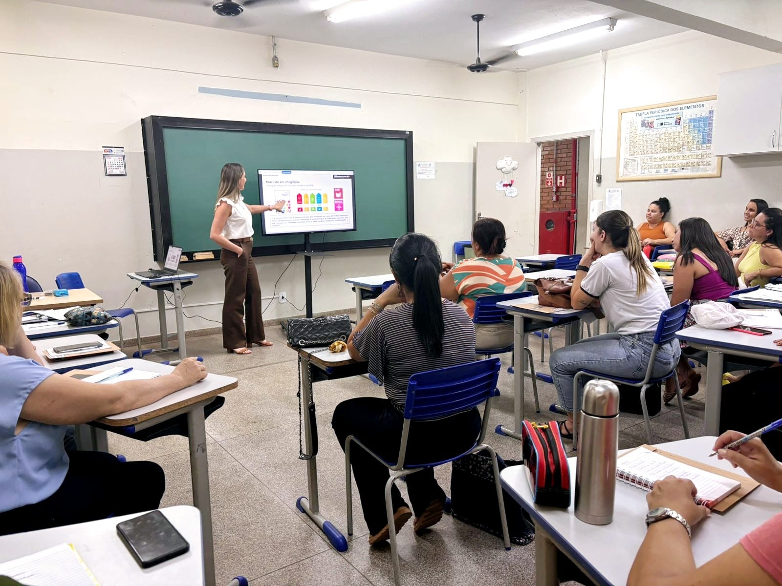 A formadora responsável pelo programa é a professora Daiana Cristina Zanardo Hoffmann e a articuladora é a professora Marinela Ferrari Bisca, que apresentaram o Currículo Paulista, as ODS e analisaram o resultado da Fluência Leitora juntamente com os professores durante o HTPC realizado no dia 13/05.
