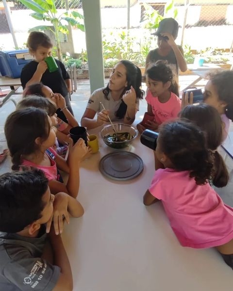 Degustação de Chás Medicinais - Uma das atividades mais encantadoras foi a experimentação de novos sabores medicinais! As crianças experimentaram os chás de cidreira, melissa e hortelã colhidas diretamente dos jardins da escola, permitindo que as crianças pudessem explorar novos sabores e entender, na prática, as propriedades medicinais dessas ervas.
