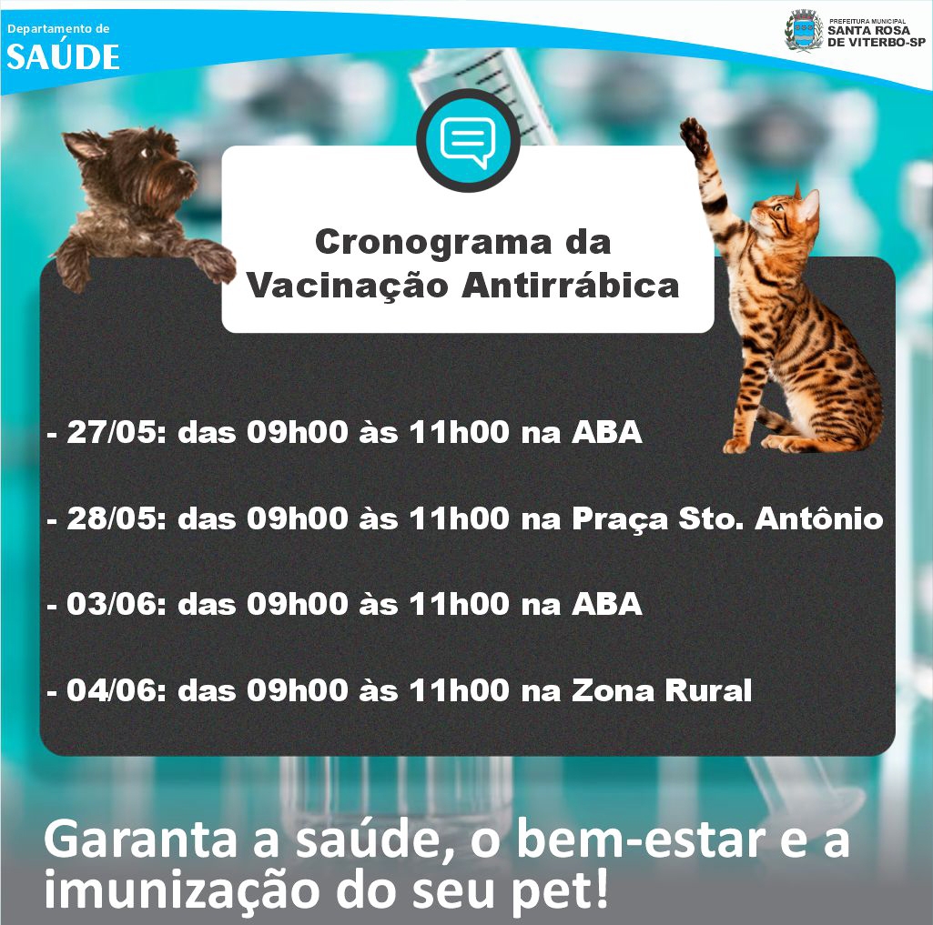 Confira o cronograma de vacinação antirrábica nas próximas semanas: