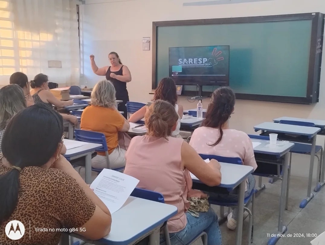 No mesmo dia, foi realizada uma reunião para orientar as professoras que aplicaram a avaliação do governo estadual SARESP para alunos dos segundos e quintos anos, realizada no dia 13/11/24.
