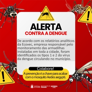 Com a chegada das festas de fim de ano, a população de Santa Rosa de Viterbo precisa redobrar os cuidados com a dengue. De acordo com os relatórios analíticos da Ecovec, empresa responsável pelo monitoramento das armadilhas instaladas em toda a cidade e por analisar os mosquitos capturados, foram identificados os tipos 1 e 2 do vírus da dengue circulando no município. Esses tipos do vírus, que já têm potencial para causar surtos, exigem a atenção de todos, principalmente em um período de clima quente, chuvoso e de grandes encontros sociais.