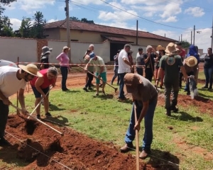Um dos momentos mais marcantes da capacitação foi a implantação do paisagismo agroflorestal em frente à Escola de Educação Ambiental. Com a orientação dos facilitadores, os participantes aplicaram os conhecimentos adquiridos, contribuindo diretamente para a regeneração do espaço e deixando um legado ambiental para a comunidade.