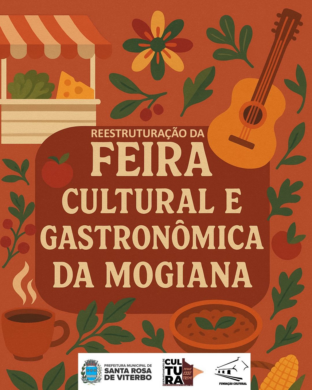 A Prefeitura Municipal de Santa Rosa de Viterbo, por meio do Departamento de Cultura, informa que a Feira Cultural e Gastronômica da Mogiana, realizada às quintas-feiras, passará, a partir desta semana, por um processo de revitalização e reformulação completa".