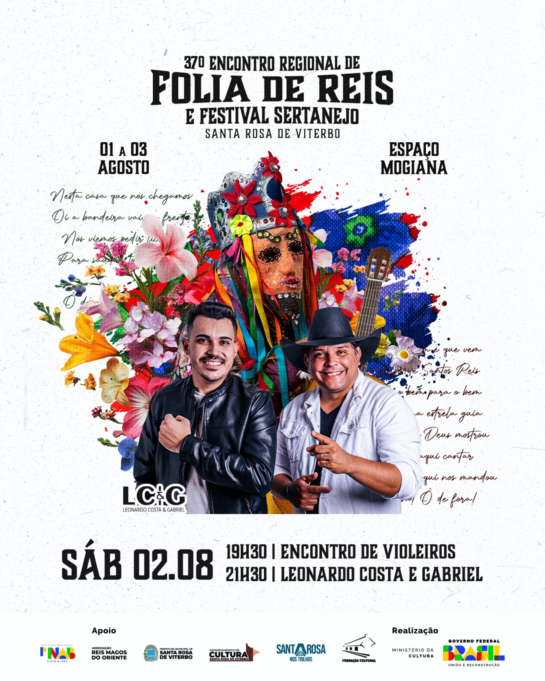 Santa Rosa de Viterbo se prepara para celebrar a cultura popular com o 37º Encontro Regional de Folia de Reis. O evento acontece de 1º a 3 de agosto, na esplanada do Espaço Mogiana, e promete reunir tradição, música e fé em uma programação especial que deve atrair um grande público durante os três dias de festa.