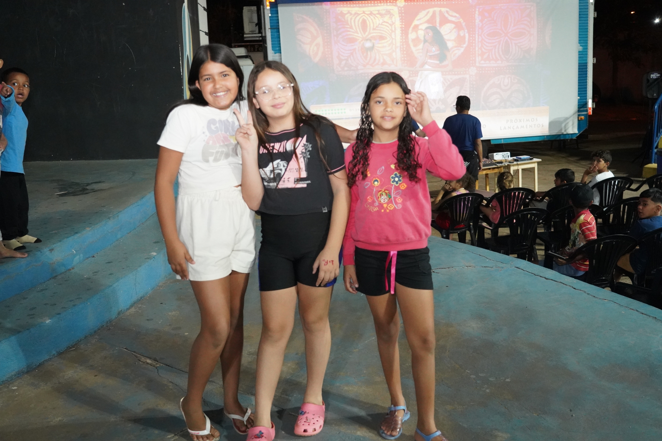 Na noite de ontem, sexta-feira (15), o anfiteatro Waldomiro Lima, na Praça Zuleika de Mello Moura Balbão, no bairro Nosso Teto, foi tomado por crianças, jovens e adultos que se reuniram para prestigiar a primeira sessão do Cine Céu: Cinema Itinerante Sustentável. Olhos atentos à telona, pipoca e refrigerante nas mãos e muitos sorrisos marcaram a exibição gratuita da animação “Moana – Um Mar de Aventuras”, que levou emoção e alegria a todos.