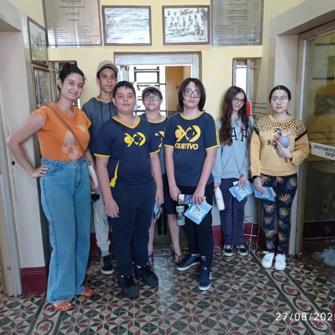 Nesta manhã de quarta-feira, 27, os alunos do Colégio Objetivo realizaram uma visita especial ao Centro de Memórias Jornalista José Hamilton Ribeiro e à Biblioteca Municipal Professora Licínia Nogueira Magalhães. Acompanhados pela professora Danila, os estudantes puderam conhecer mais sobre a história do jornalista mais premiado do Brasil e explorar o acervo literário disponível à população.