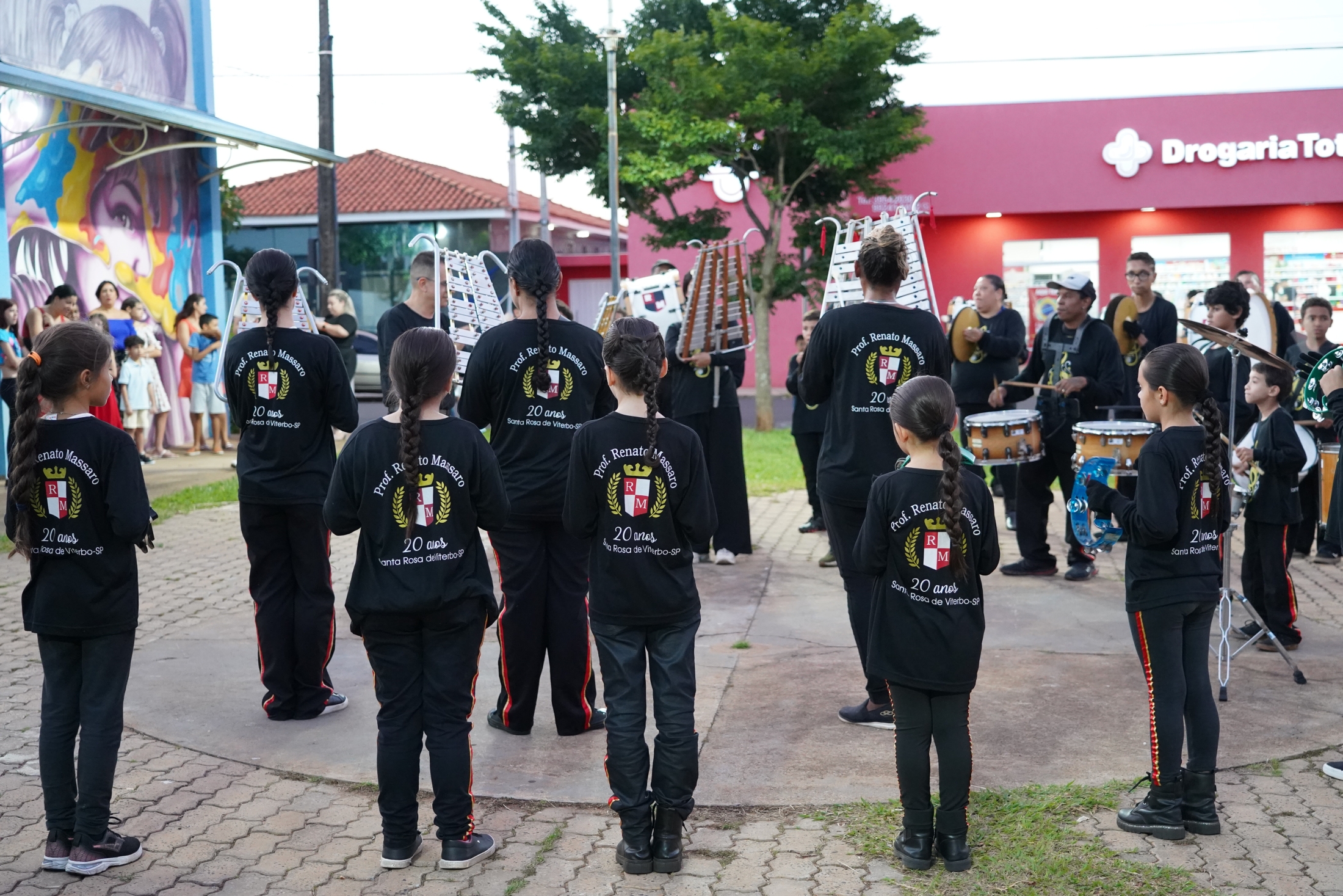 A noite desta sexta-feira, 28 de novembro, foi marcada pela cerimônia de premiação dos alunos do Recriança Tio Pica-Pau participantes do Projeto F25. O evento teve abertura especial com a apresentação da Banda Professor Renato Massaro, que recepcionou o público e deu ainda mais brilho ao momento.