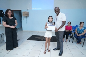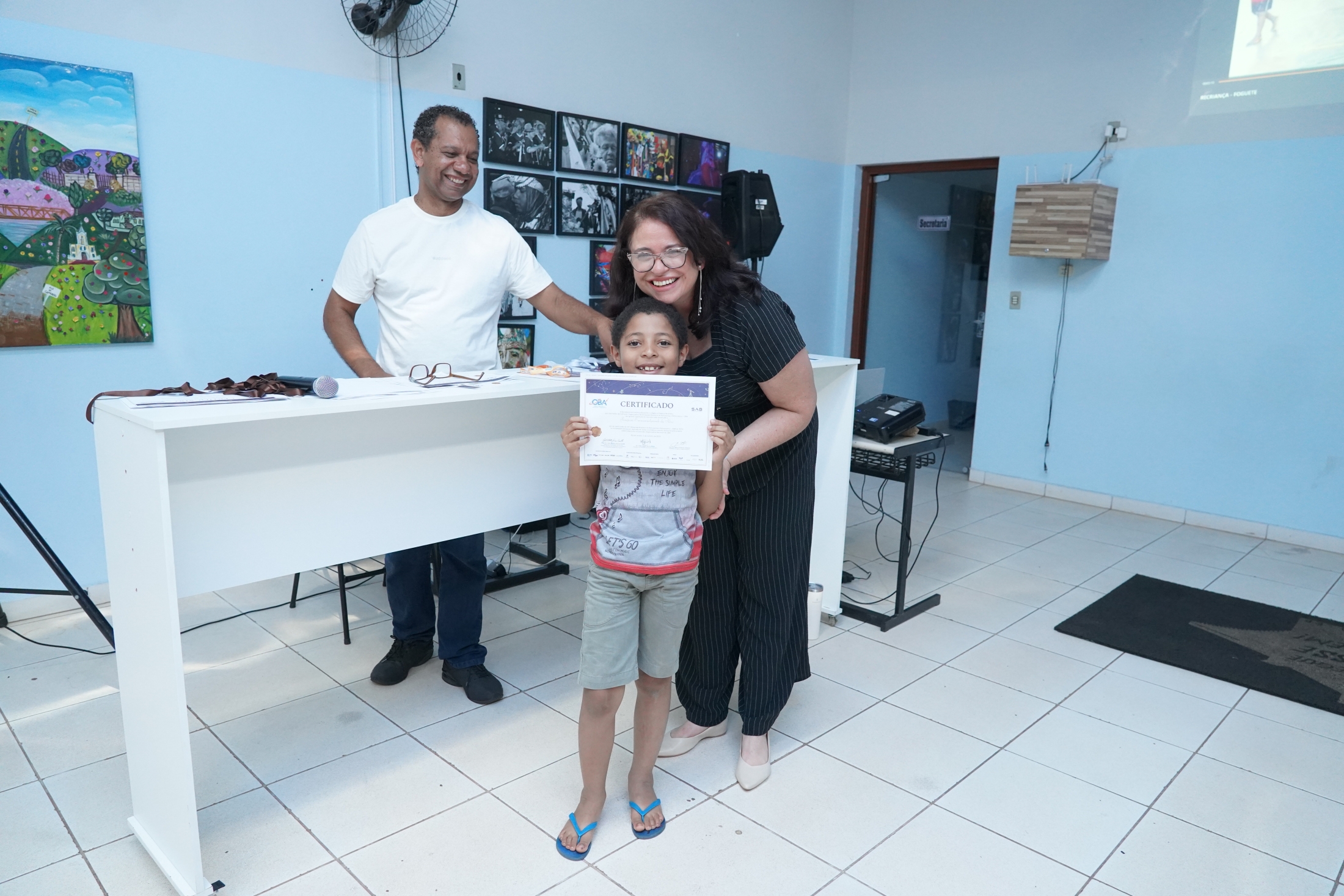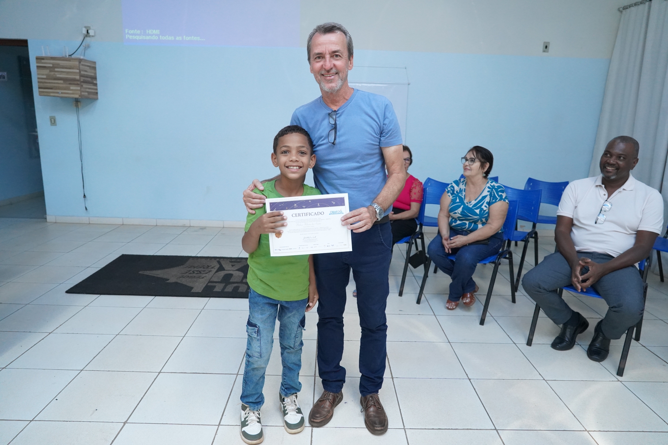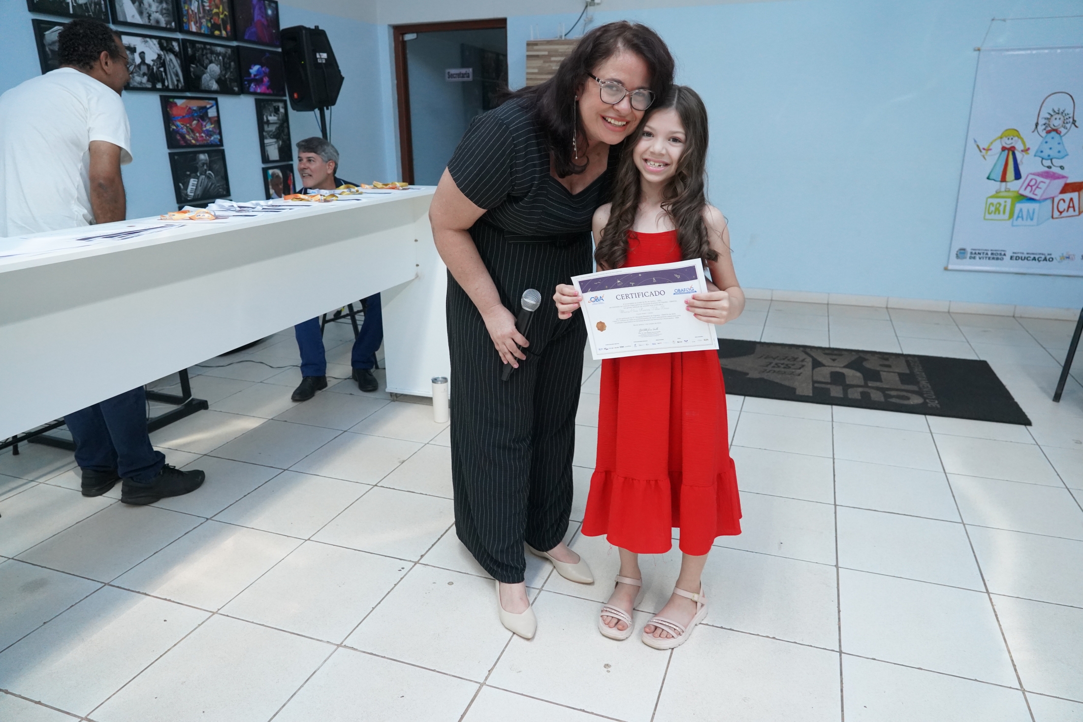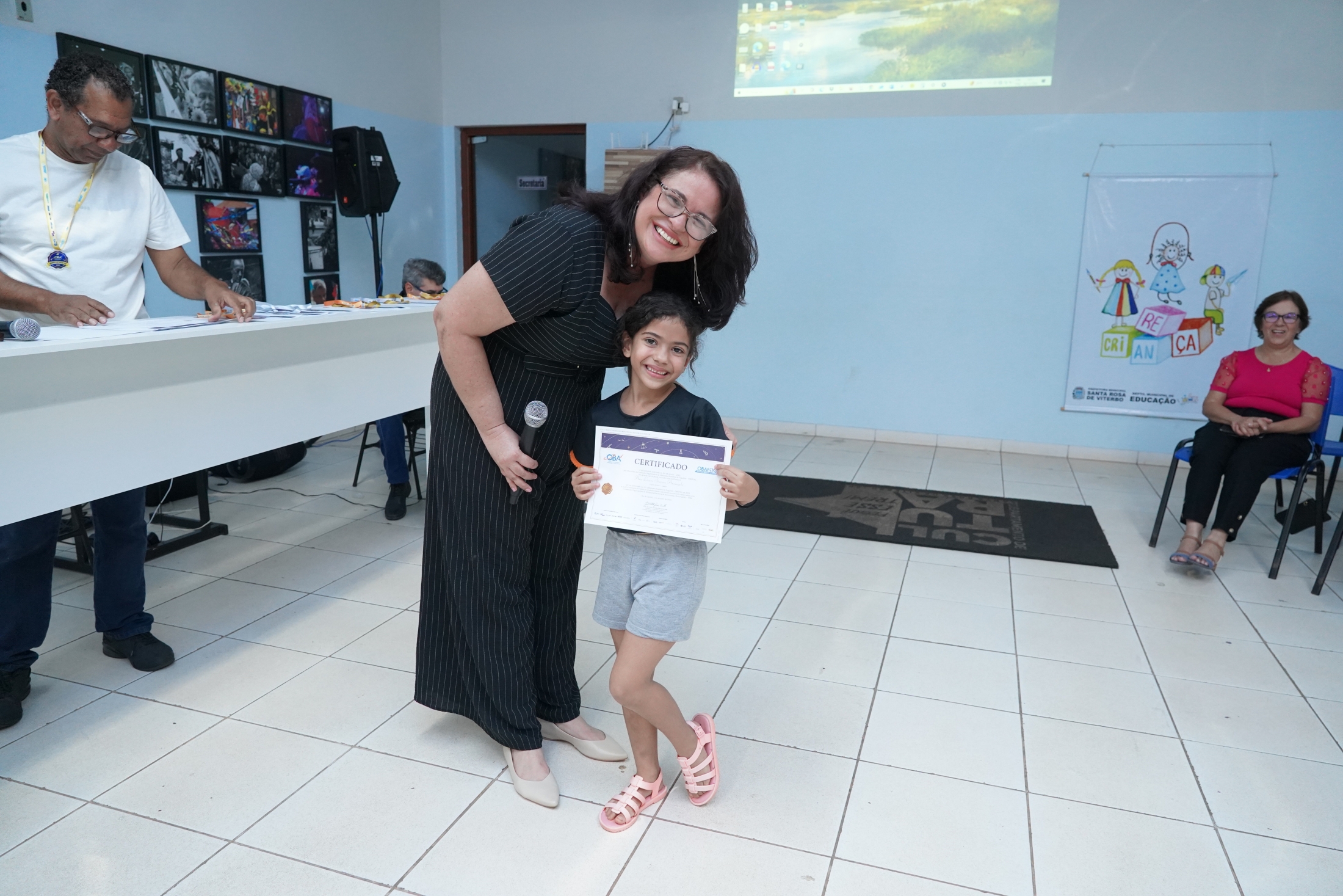 A cerimônia, que também certificou alunos pela participação e foi aberta às famílias e ao público, destacou o empenho dos participantes e o impacto positivo da iniciativa no aprendizado. Durante o evento, o vice-prefeito Paulão Santos parabenizou todos os envolvidos: “Quero parabenizar os professores da equipe desse projeto e destacar o quanto é importante as pessoas estarem envolvidas nos projetos escolares e nos projetos do Recriança. Parabenizo também as crianças e as famílias que permitem a participação dos filhos nesses projetos que enaltecem e transformam. Crianças envolvidas em projetos do bem se tornam adultos do bem. Parabéns a todos.”