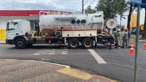Com apoio da Prefeitura, a Sabesp está realizando a manutenção da rede de esgotos na Avenida Luiza Garcia Ribeiro, no bairro Liliana Urtiaga Andreazza (Nosso Teto).