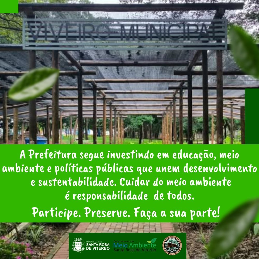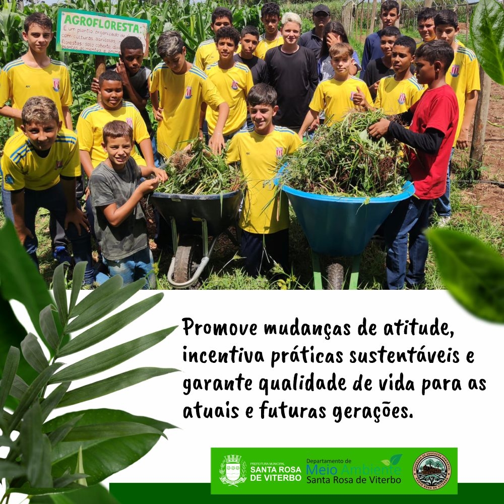 Hoje, a Prefeitura de Santa Rosa de Viterbo celebra o Dia Mundial da Educação Ambiental, reforçando o compromisso com a formação de uma cidade cada vez mais consciente, sustentável e responsável com o meio ambiente.