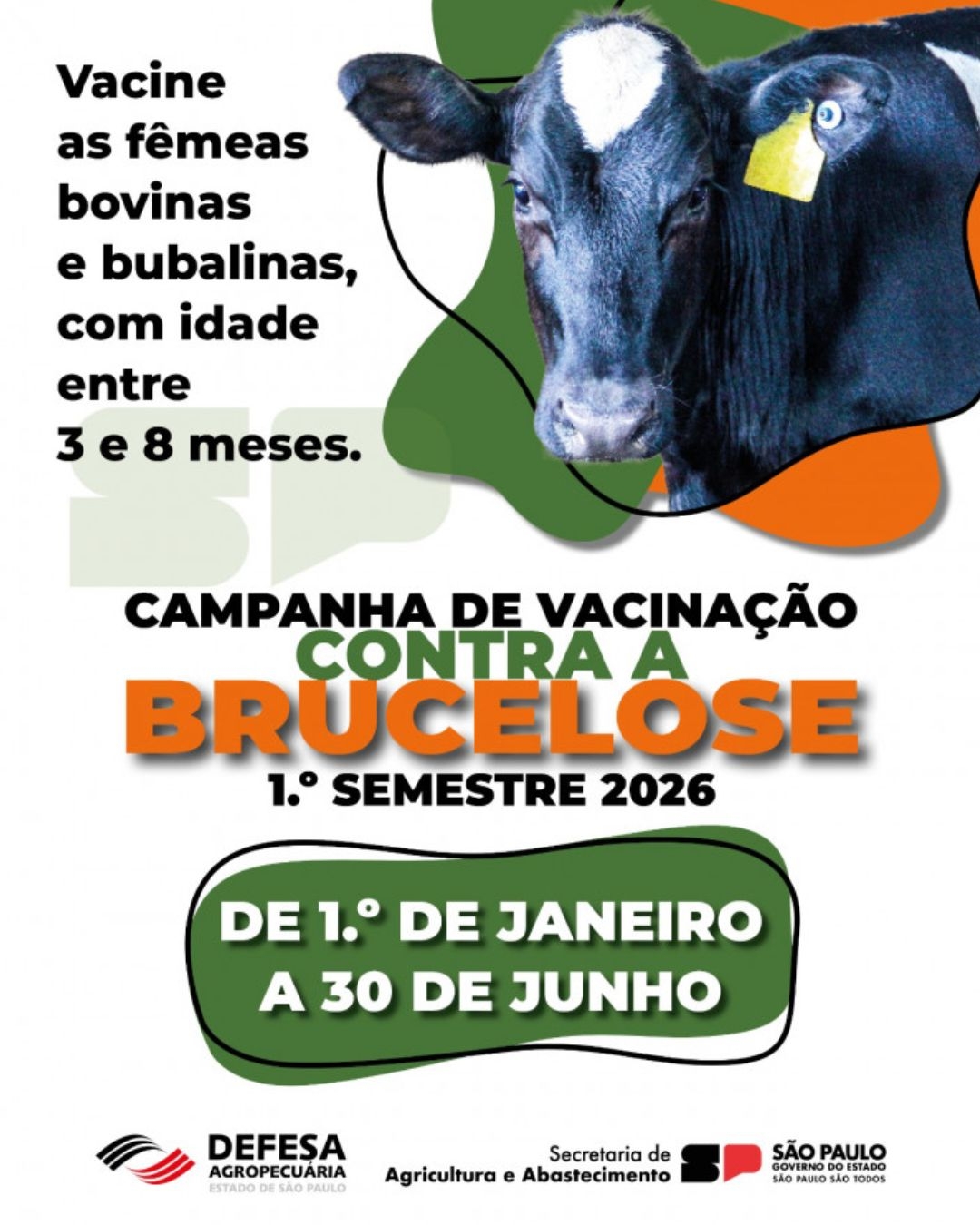 É obrigatória a vacinação contra a Brucelose de todas as fêmeas das espécies bovina e bubalina, com idade entre 3 e 8 meses.