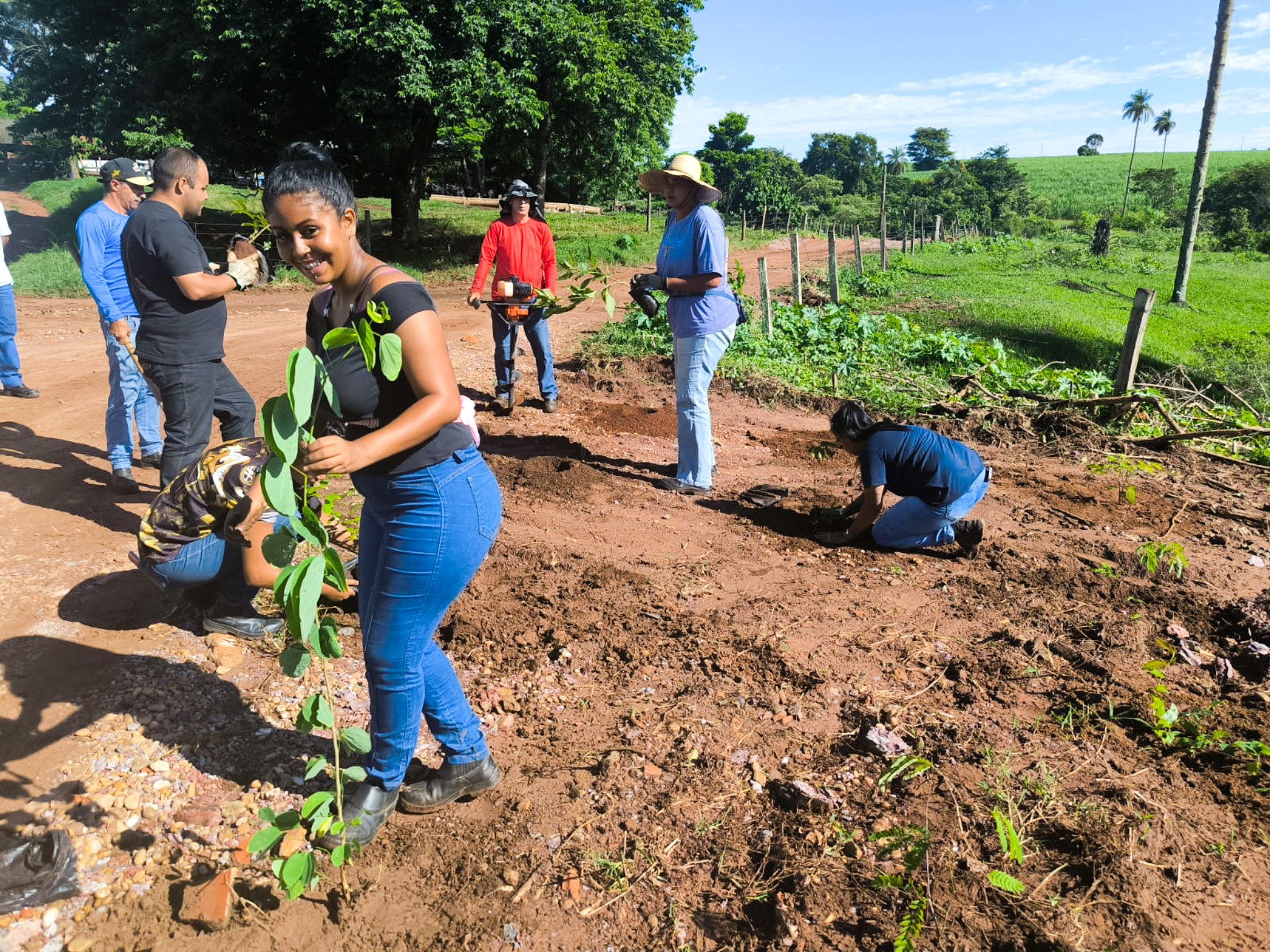 O Departamento de Meio Ambiente, por meio da diretora Camila Fedel, coordenou o plantio de mudas realizado às margens do Córrego Bonsucesso, com o apoio da Frente de Trabalho, como parte do cumprimento de um Termo de Compromisso de Recuperação Ambiental (TCRA) da Cetesb, firmado há muitos anos.