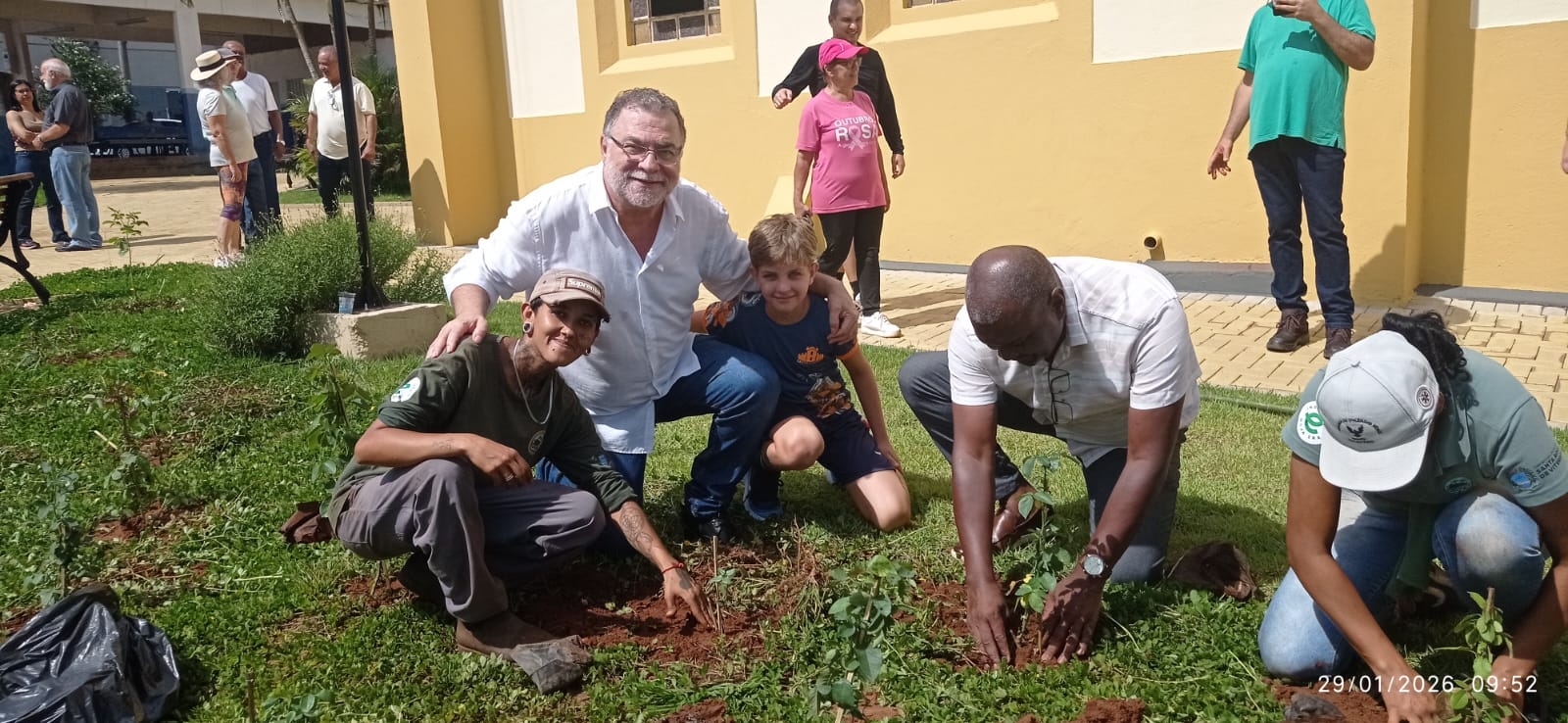 O plantio contou com a presença do prefeito Omar Nagib, do vice-prefeito Paulão Santos, do cônego Pedro, além de vereadores, servidores municipais, crianças e membros da comunidade, evidenciando o compromisso conjunto com o desenvolvimento sustentável e a valorização dos espaços públicos.