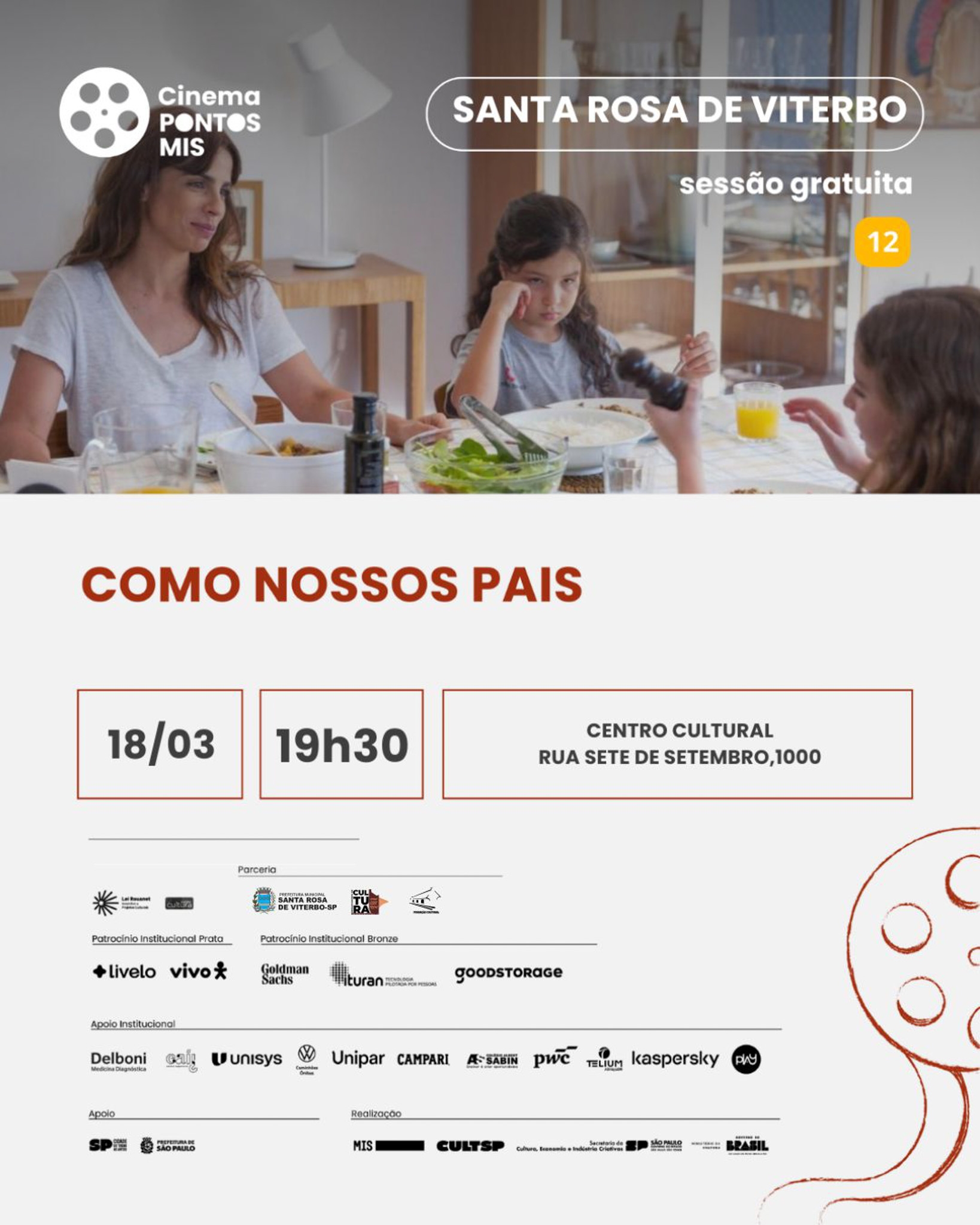 O Pontos MIS, a Fundação Cultural e o Departamento de Cultura apresentam a programação de filmes que serão exibidos no Centro Cultural ao longo do mês de março, em Santa Rosa de Viterbo.