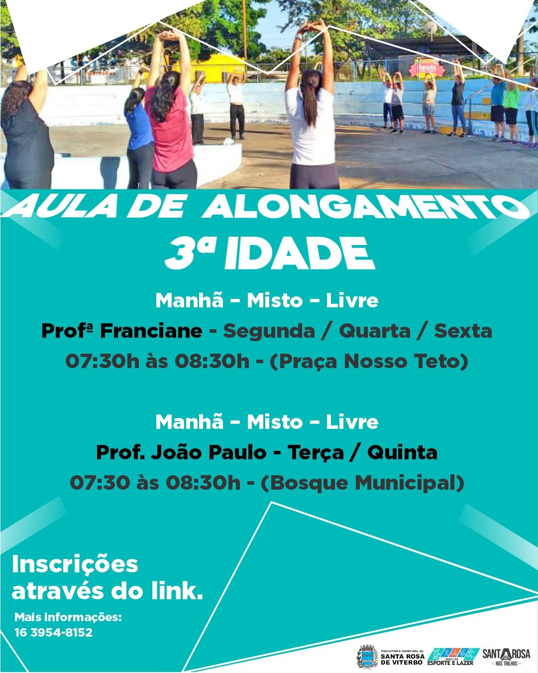 Segunda / Quarta / Sexta – 07:30h às 08:30h (Praça Teto)