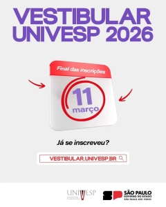 As inscrições para o Vestibular Univesp 2026 vão até a próxima quarta-feira (11/03)! Não deixe para a última hora e prepare-se para transformar seu futuro!