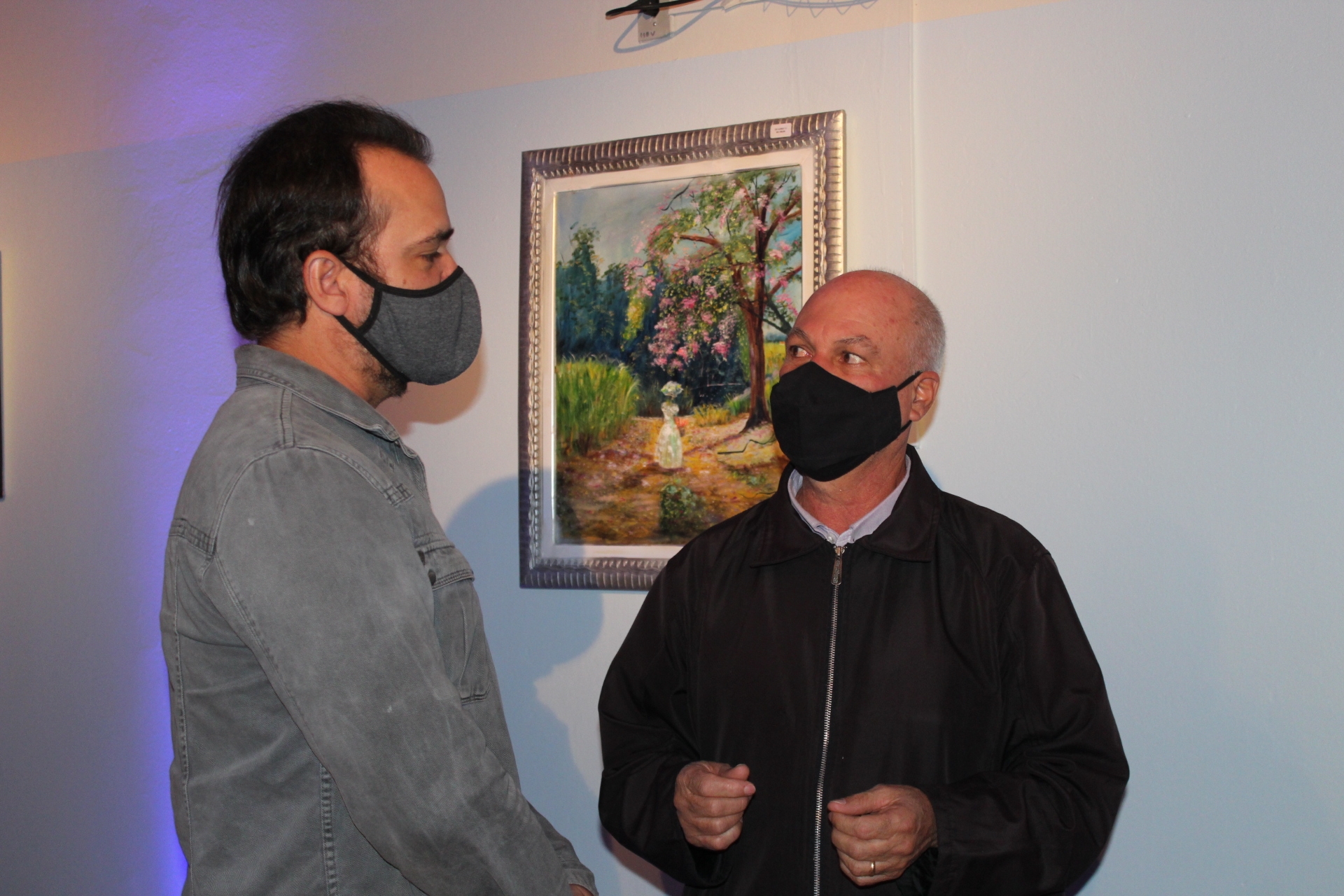Romes Mesquita e Romildo Mesquita (Mirdão) falaram sobre o início de suas carreiras, a admiração pela arte e as inspirações para suas pinturas. Romes explicou que sua paixão vem desde criança e que usava o tempo livre para aprender a pintar: “Eu desenhava quando era criança, mas o que eu queria, mesmo, era aprender a pintar. Então, comecei a misturar as cores e as pinturas foram surgindo. Essa já é a minha terceira exposição”, disse.