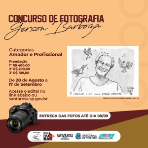 “O I Concurso de Fotografia “Gerson Barboza” tem por objetivo proporcionar aos amantes de fotografia a oportunidade de registrar as diversas faces da Santa Rosa de Viterbo, bem como sua gente, seus costumes, seus lugares, suas particularidades”, explicou José Paulo Orlando, diretor do Departamento de Cultura, Turismo, Esporte e Lazer.