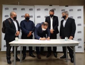 O prefeito Omar Nagib Moussa juntamente com o secretário Estadual da Habitação Flávio Amary assinaram na segunda-feira (30), em São Paulo, a Ordem de Serviço para início da construção das 203 casas do Conjunto Habitacional Padre Donizete.