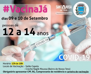 Santa Rosa de Viterbo inicia nesta quinta-feira (9) e sexta-feira (10) a vacinação contra a COVID-19 de adolescentes de 12 a 14 anos.
