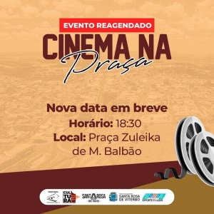 A Prefeitura Municipal de Santa Rosa de Viterbo informa que o evento “Cinema na Praça” que seria exibido nesta quinta-feira (09), às 18h30, na Praça Zuleika de M. Balbão, no bairro Liliana Urtiaga Andreazza (Nosso Teto), foi cancelado.