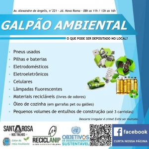 O Galpão Ambiental de Santa Rosa de Viterbo, inaugurado durante a semana de Meio Ambiente deste ano, com foco em ampliar a responsabilidade ambiental, vem recebendo deste então, resíduos como pneus usados; pilhas e baterias, eletrodomésticos, eletroeletrônicos, celulares, lâmpadas fluorescentes, materiais recicláveis, óleo de cozinha e pequenos volumes de entulhos de construção.