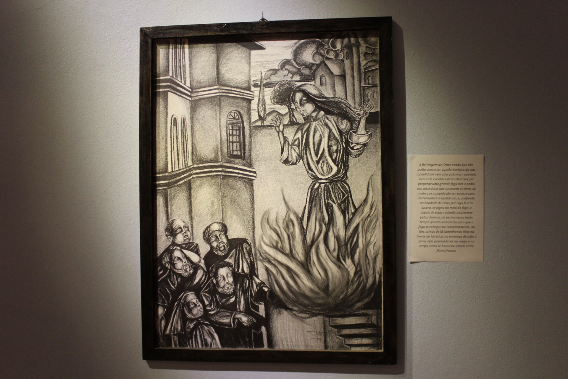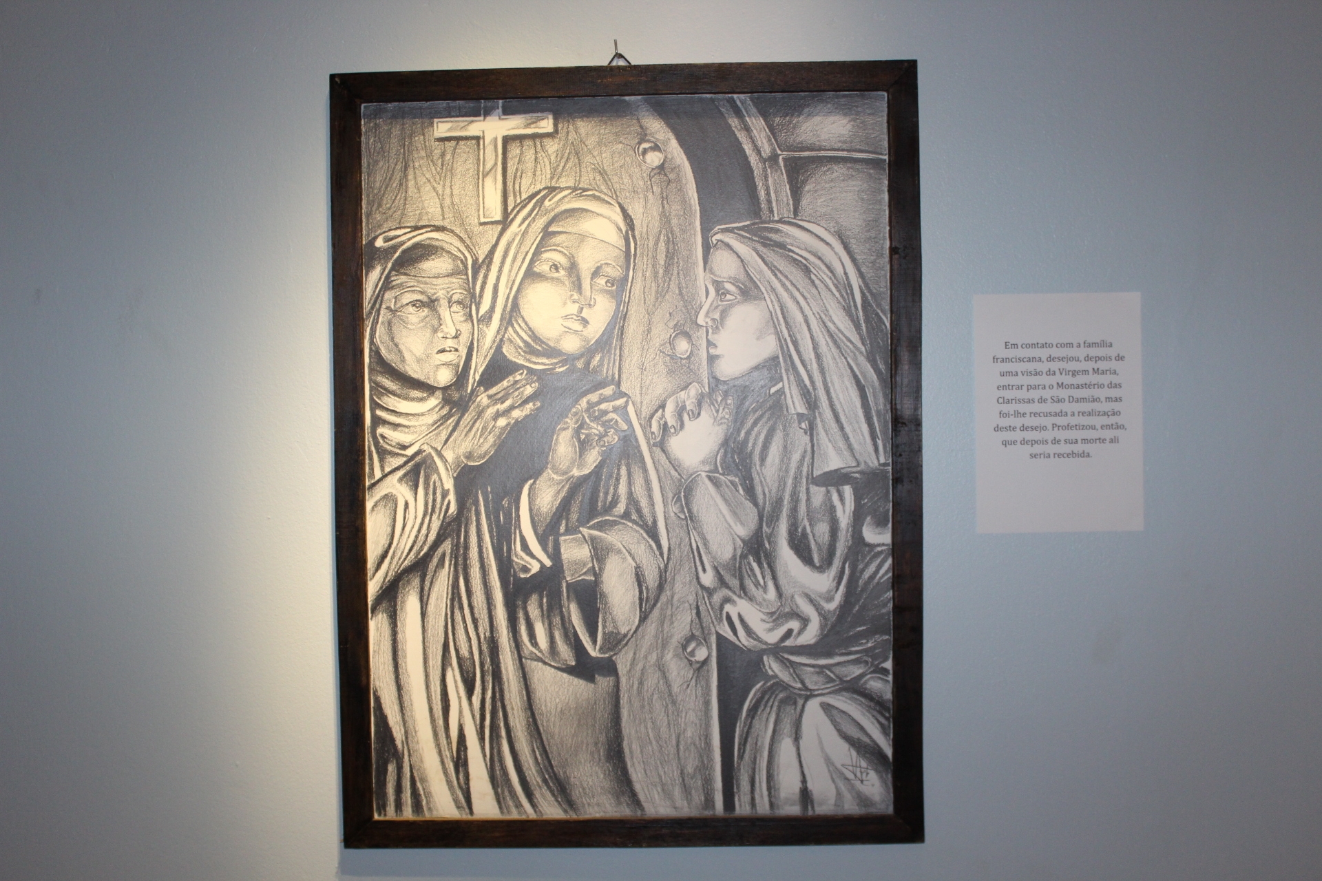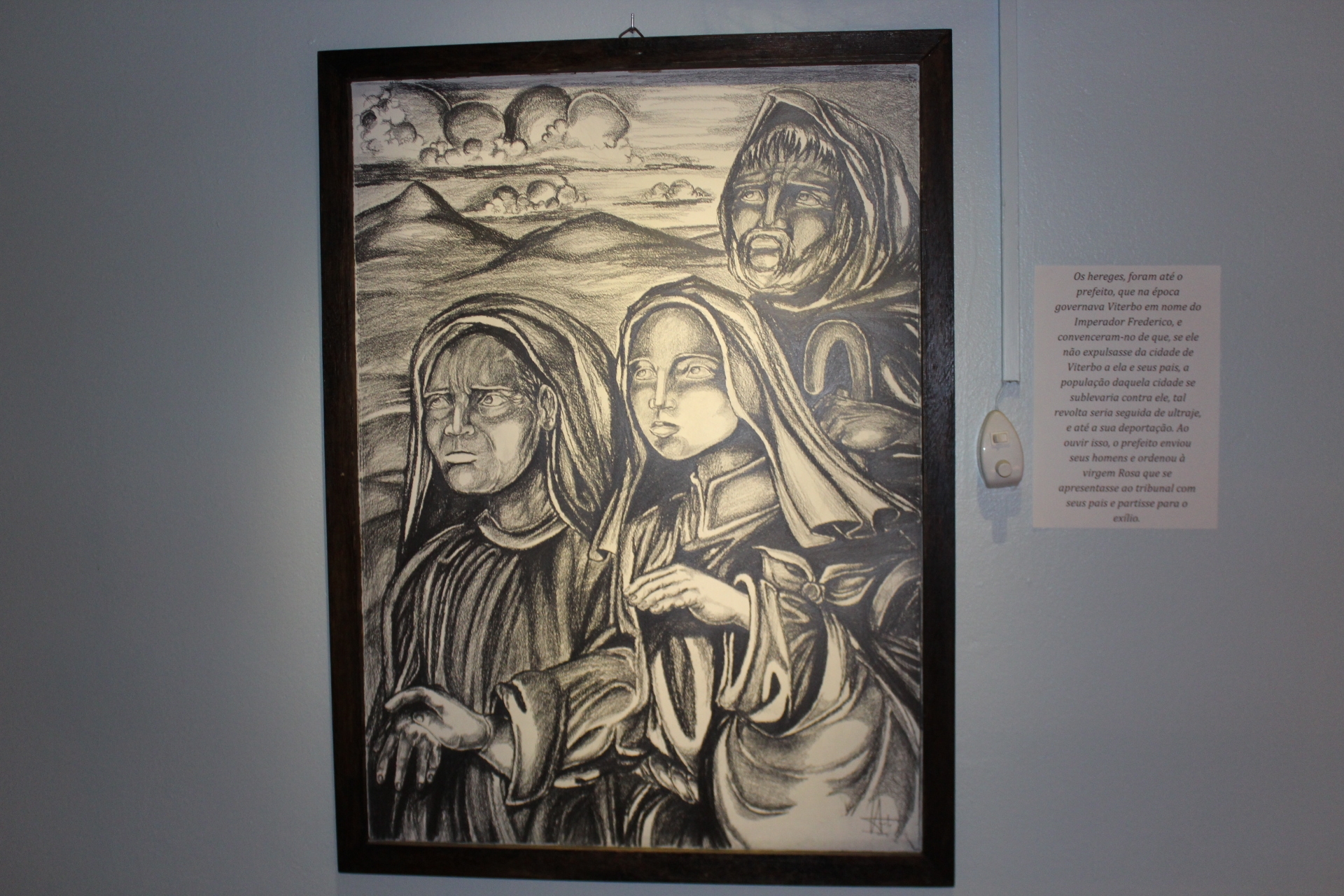 Por fim, Lafite explicou o tema escolhido para a exposição. “Conta a história de Santa Rosa mesmo, a de Viterbo, na Itália. Retratei a caminhada dela”.