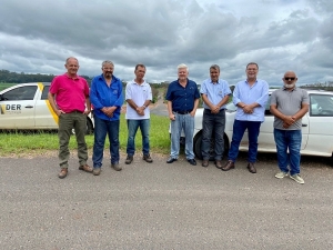 Nesta quarta-feira (5), acompanhado pelo diretor de obras da prefeitura, Marcelo Benjamin Sordi, pelo presidente da Câmara Municipal, Luís dos Reis Augusto (Bode), do vereador Teófilo Rose e por representantes do DER, Omar vistoriou a estrada e a rota alternativa para circulação dos veículos durante o período de obras.