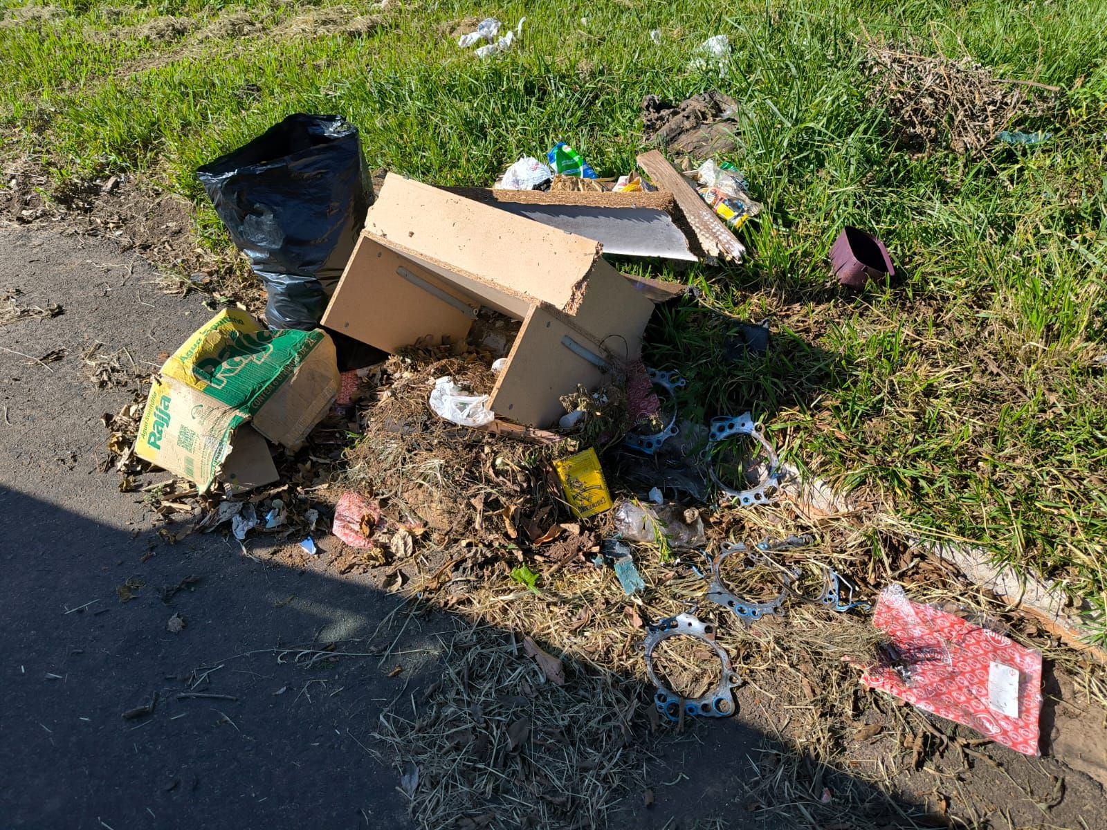 O Departamento de Meio Ambiente identificou mais um descarte irregular, desta vez em uma praça do bairro Nova Roma. A prática prejudica o meio ambiente, a limpeza urbana e a saúde pública.
