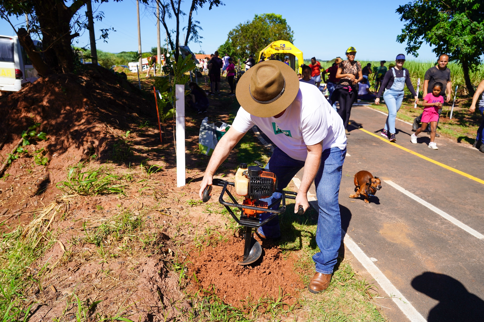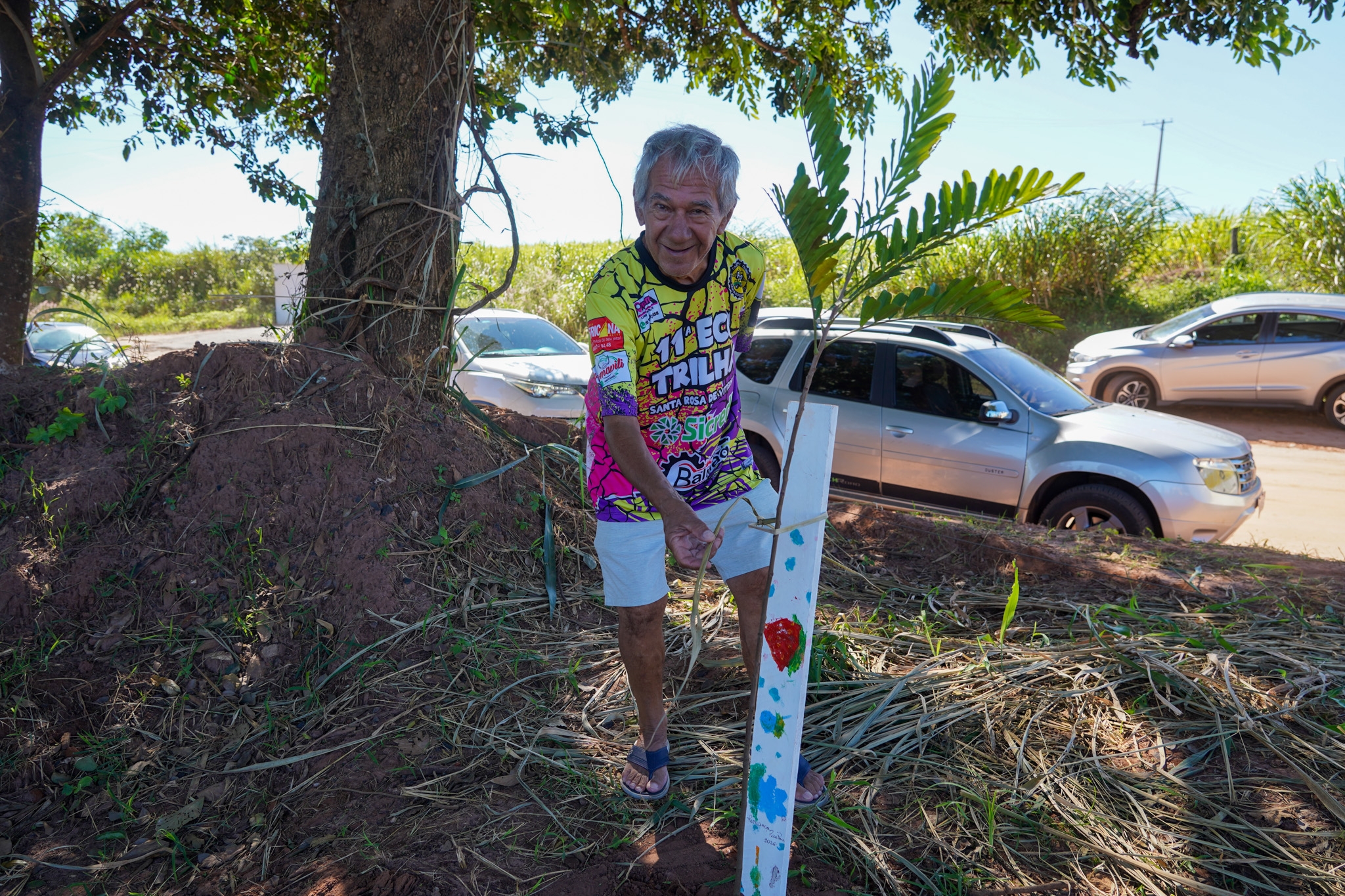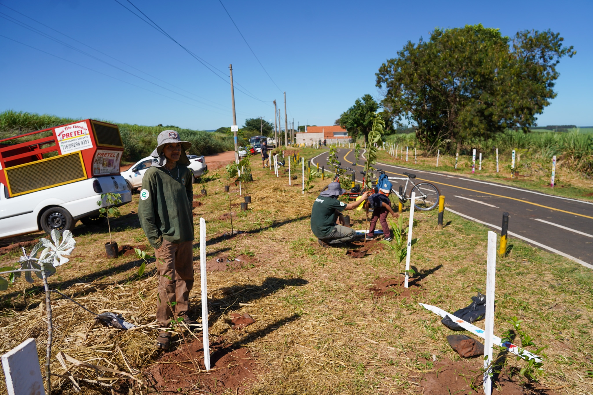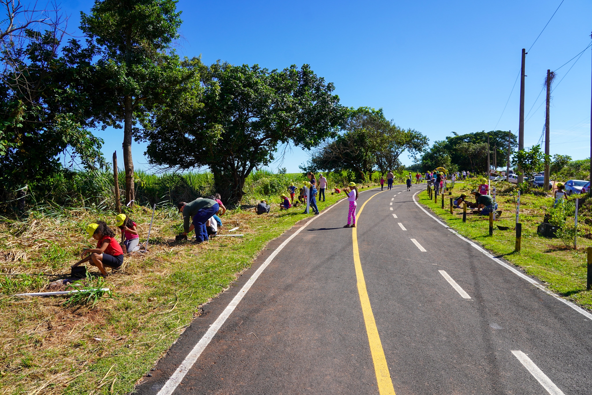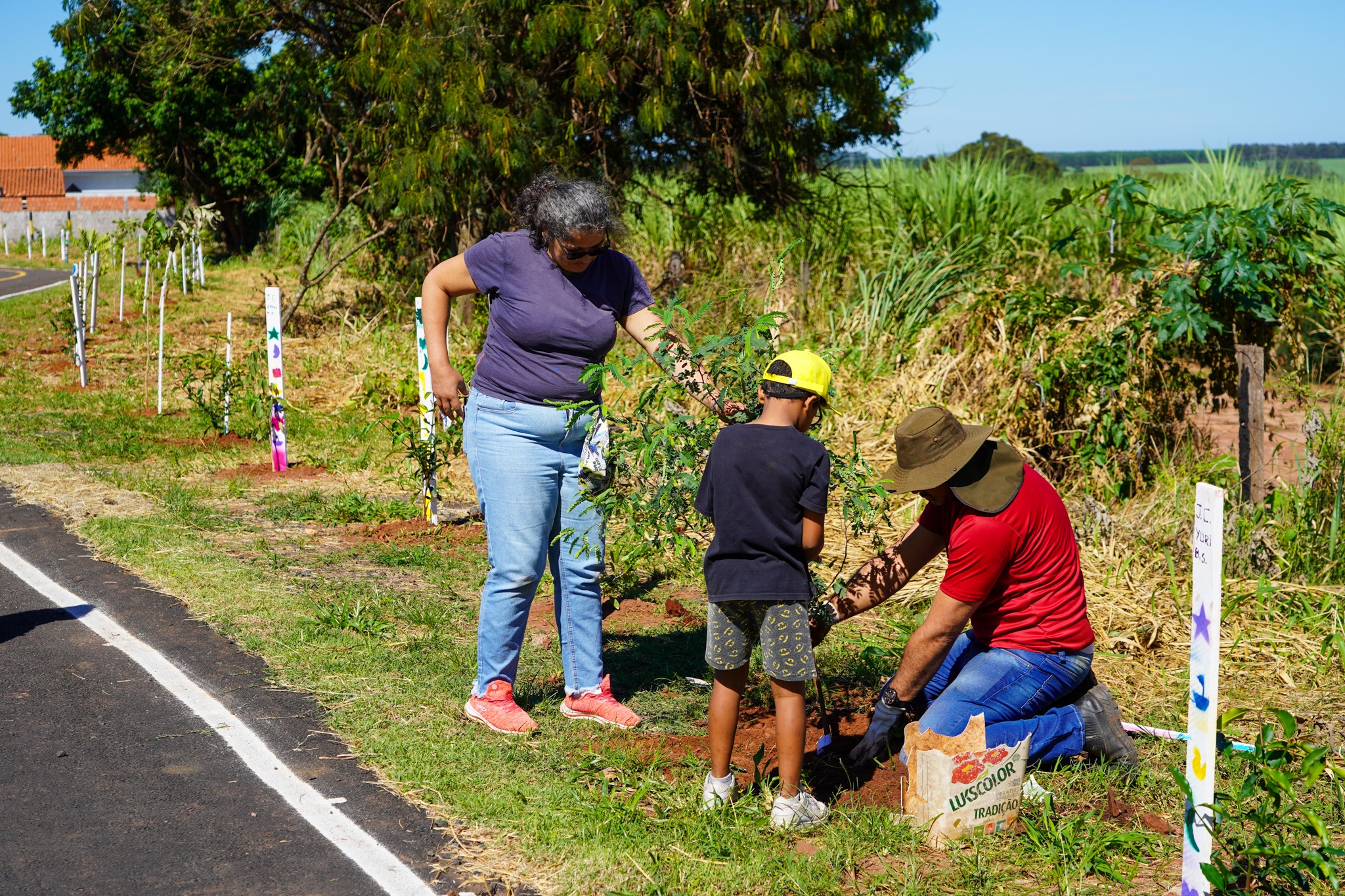 A manhã deste domingo (29) ganhou novos tons de verde na Ciclovia e Trilha de Caminhada do Tirisco. Em mais uma etapa do reflorestamento da área, a Prefeitura, por meio do Departamento de Meio Ambiente, promoveu o plantio de 360 mudas de árvores — entre espécies nativas, do cerrado e frutíferas — em uma ação que uniu alunos do programa Recriança, moradores e parceiros.