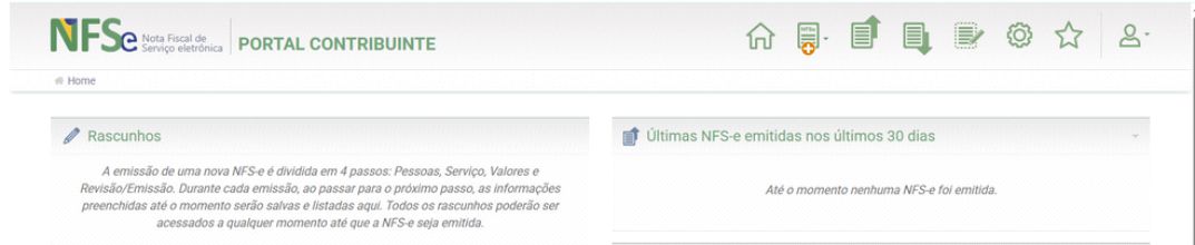Uma nova tela deve se abrir com o título “Portal do Contribuinte”, clique na imagem onde aparece o símbolo de + indicada pela seta na imagem abaixo, para abrir uma nova tela que será o modelo da nota fiscal a ser preenchida.