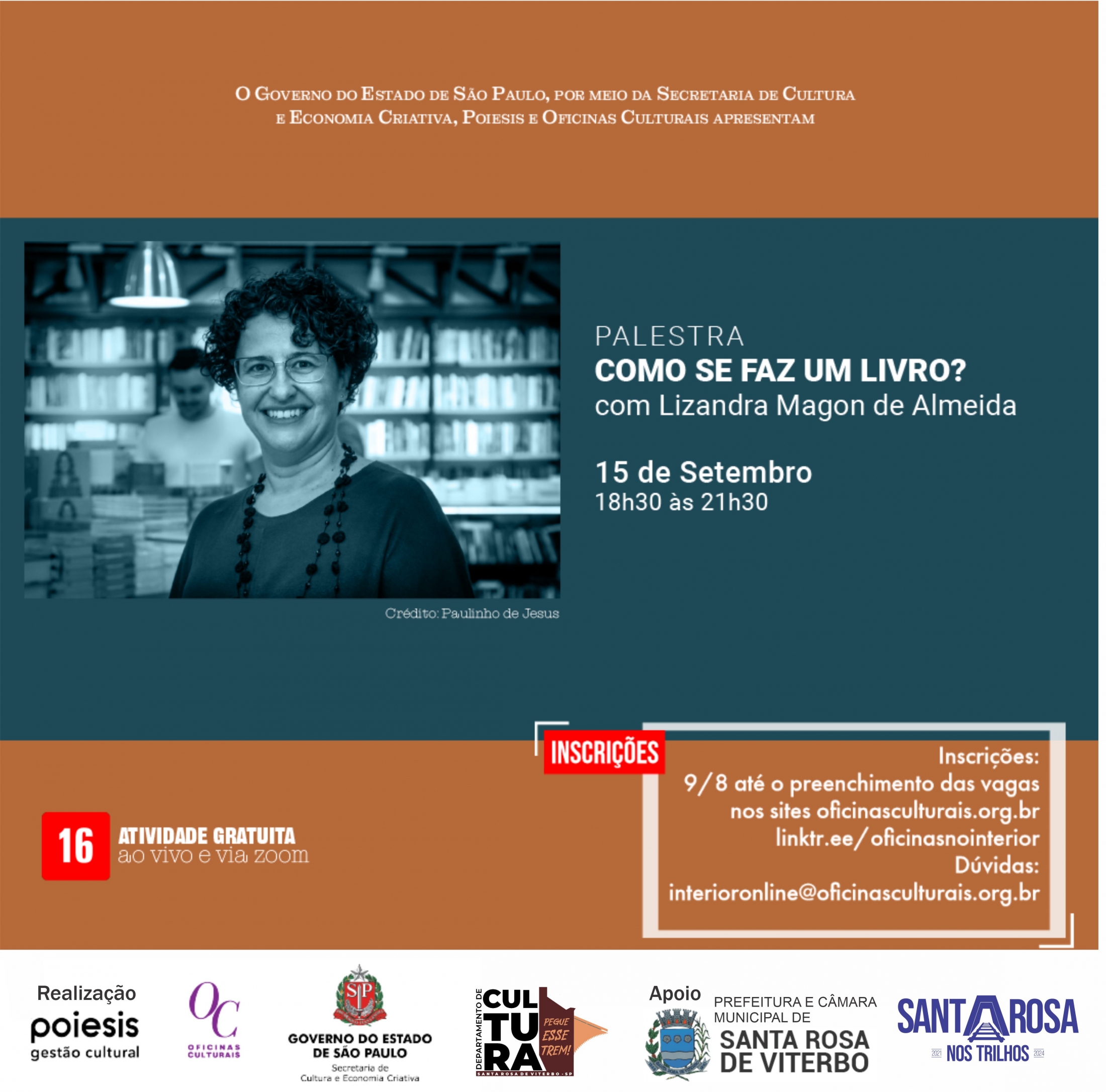 Do original ao livro impresso ou digital, vamos conversar sobre o processo de produção de um livro desde o momento em que o autor ou autora entrega um texto escrito até que ele sai da gráfica ou da conversão para o digital. O processo de edição de texto, a criação do projeto gráfico e da capa, as revisões, a diagramação: todas as etapas de construção de um projeto editorial serão explicadas de forma simples e acessível, a partir de exemplos de projetos já executados pela editora