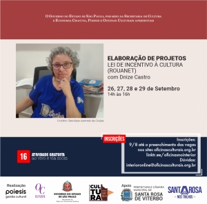 Esta oficina busca contribuir para que profissionais das artes ou iniciantes ( teatro, música, dança, literatura, fotografia, economia criativa, etc) com ideias de projetos, querendo estruturar suas argumentações, possam atender às exigências da Lei de Incentivo à Cultura (Rouanet) e se enquadrar num perfil ideal de análise, com chances de aprovação