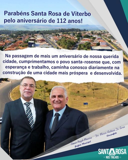 O Prefeito Omar Nagib Moussa e o Vice-prefeito Dr. Marco Antônio Di Serio saúdam Santa Rosa de Viterbo pelo aniversário de 112 anos.