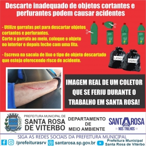 Vidros e lâmpadas quebradas, latas, seringas e até espetos de churrasquinhos devem ser acondicionados de forma a não oferecerem riscos na hora de serem coletados;