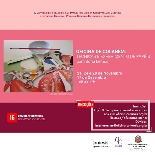 Datas e horários: 21, 24, 28/11 e 01/12 -10h às 12h