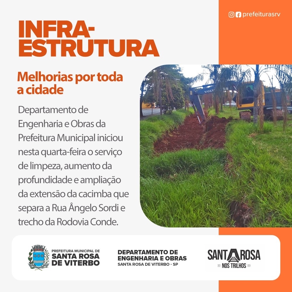 O Departamento de Engenharia e Obras da Prefeitura Municipal iniciou nesta quarta-feira o serviço de limpeza, aumento da profundidade e ampliação da extensão da cacimba que separa a Rua Ângelo Sordi e trecho da Rodovia Conde Francisco Matarazzo defronte ao bairro Nova Roma.