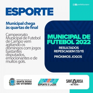 Iniciado no dia 18 de outubro o Campeonato Municipal de Futebol vem agitando os domingos com jogos bastante disputados, emocionantes e de muitos gols.