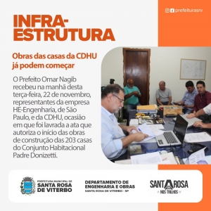 As obras terão início na primeira quinzena do mês dezembro e, na primeira etapa, serão construídas 59 unidades de três quadras com prazo de entrega de até 05 meses. “Hoje demos mais um importante passo para concretizar o sonho da casa própria de muitas famílias. E torcemos para que a empresa cumpra o cronograma de obras e assim não haja mais atrasos e sofrimentos às famílias que tanto aguardam a sua casa própria” disse o Prefeito Omar Nagib.