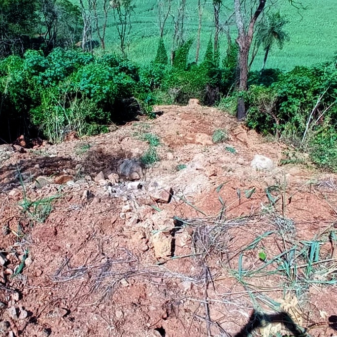 Muita terra, pedras e vegetação desceram da encosta devido o solo encharcado por conta do grande volume de chuva dos últimos dias. O trabalho agora é de remoção do material que obstruiu de vez a estrada.