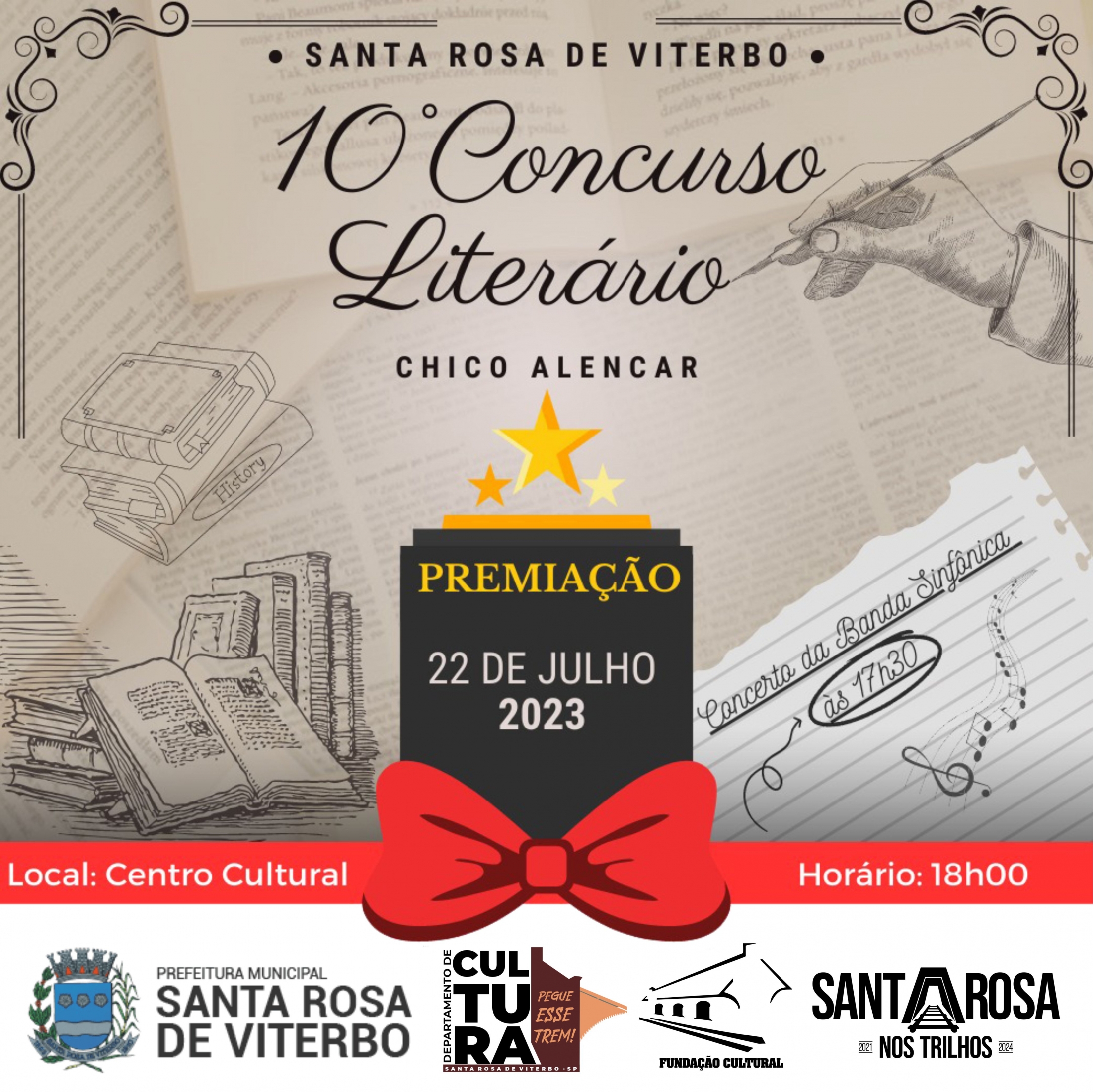 O Concurso Chico Alencar é uma realização da Prefeitura Municipal através do Departamento de Cultura e a Fundação Cultural. Apoio: Câmara Municipal.