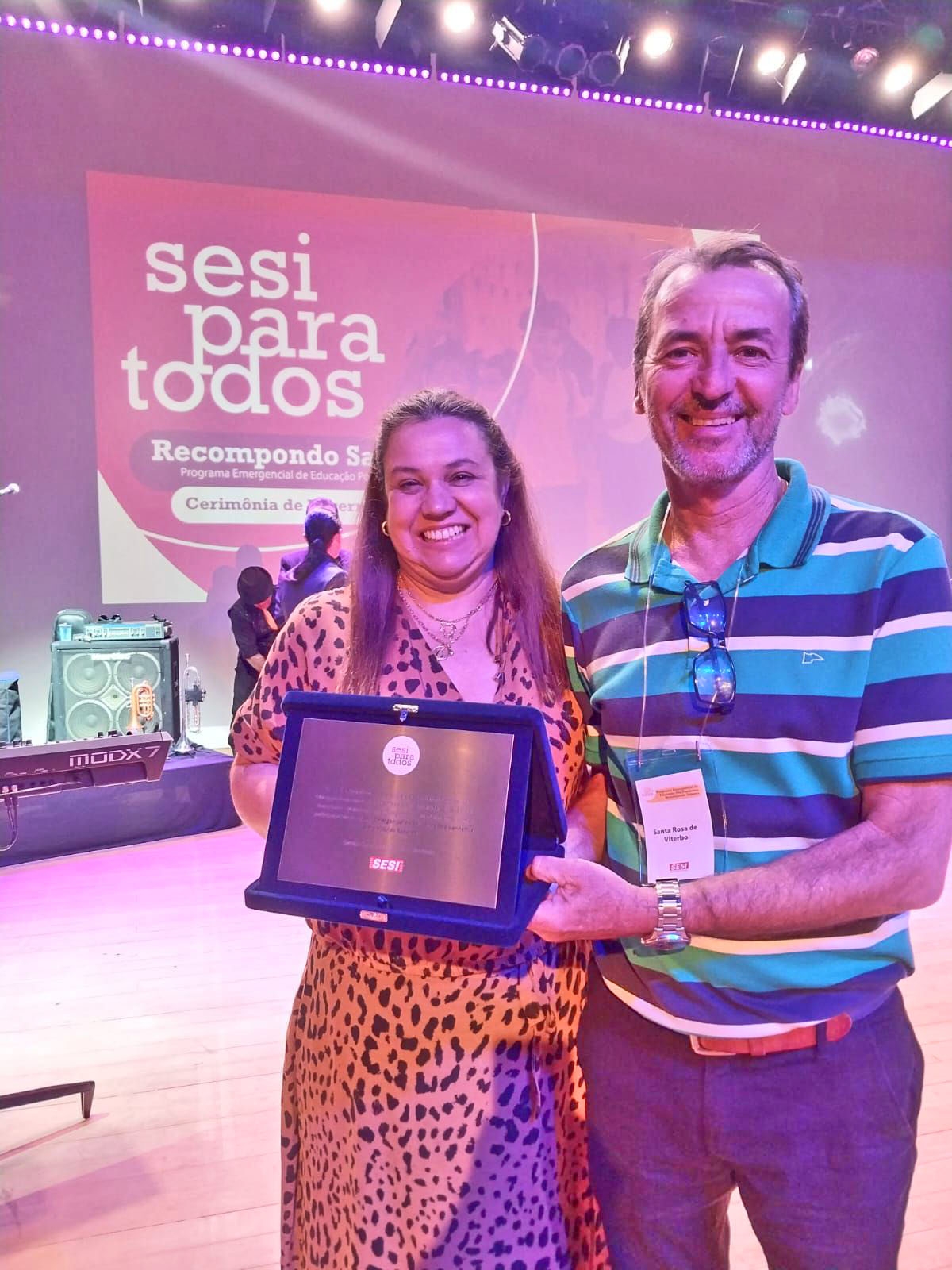 Concluído o período da capacitação, que teve início em agosto de 2022, o SESI Ribeirão Preto promoveu, na última terça-feira, a cerimônia de encerramento do projeto. O evento contou com a presença de mais de 200 especialistas e autoridades da área de Educação das regiões de Franca, Ribeirão Preto, Sertãozinho, Rio Claro, Araraquara, Matão, São Carlos, Mogi Guaçu, Jaú, Botucatu e Bauru, incluindo Santa Rosa, representada pelas presenças do Diretor de Educação, Marcos Ferri, e a Professora Fabiana Ornela Queiroz Baruco.
