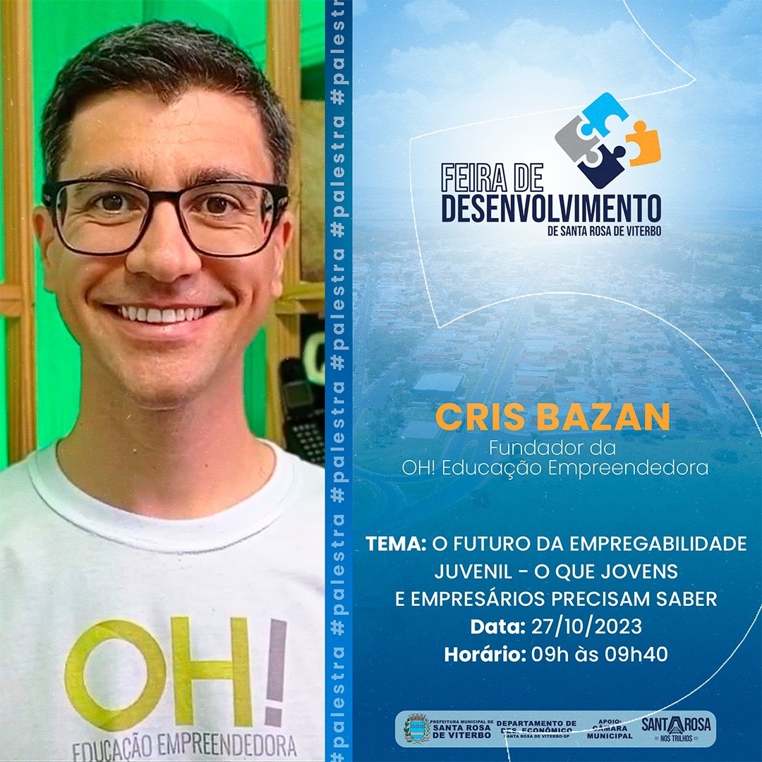 Estamos entusiasmados em apresentar Cris Bazan, um administrador com pós-graduação em aprendizagem ativa e gamificação de objetos educacionais, e o fundador da OH Educação. A OH Educação é uma escola de empreendedorismo que se dedica à inclusão produtiva de jovens e adultos, por meio de programas como o "Empreendedor" e o "Empregabilidade Juvenil".