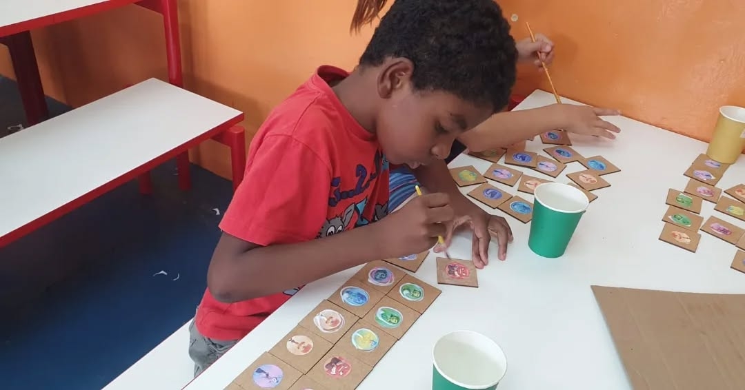 Na oficina de Entretenimento do projeto Recriança Tio Pica-Pau, as crianças soltaram a criatividade e produziram seus próprios jogos sob a orientação da profissional de educação Elaine Cruz. Utilizando materiais de descarte cedidos pela empresa NIG, elas confeccionaram versões personalizadas do Jogo da Velha e do Jogo da Memória, transformando reaproveitamento em diversão e aprendizado.