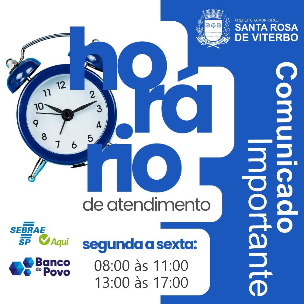 Informamos que, a partir de amanhã, 1º de abril, o horário de atendimento do Sebrae Aqui e Banco do Povo será das 08:00 às 11:00 e das 13:00 às 17:00.