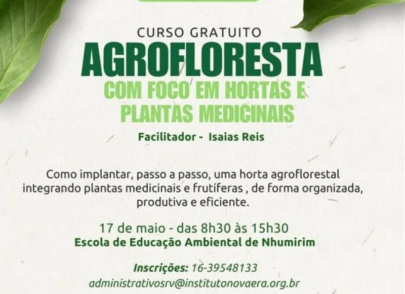 A Escola de Educação Ambiental de Santa Rosa de Viterbo, referência em agrofloresta e sustentabilidade, sediará um curso prático voltado à implantação de hortas agroflorestais com integração de plantas medicinais e frutíferas. A formação será realizada diretamente no campo, com metodologia acessível e estruturada para facilitar o aprendizado dos participantes.